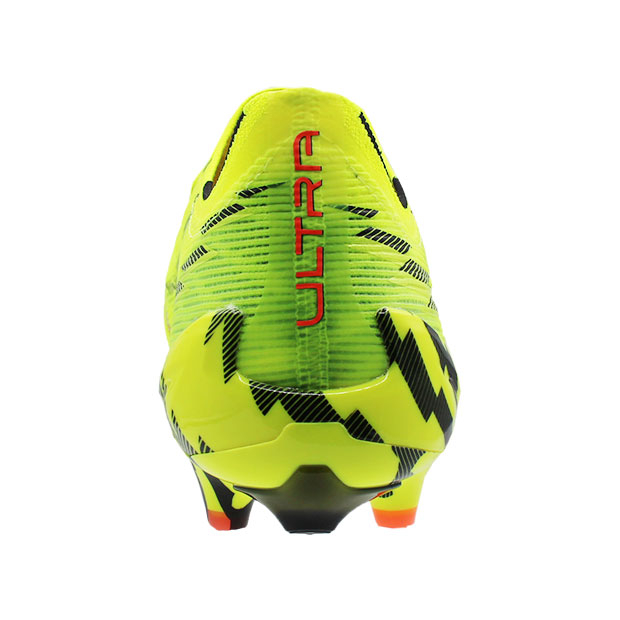 異次元のスピードでゲームを支配するスピードブーツ、アルティメットモデルスパイク。軽量メッシュアッパーとスピードシステムアウトソールを採用。最速を追求し開発された独自素材を使用したエンジニアードメッシュアッパーにサポート素材「PWRTAPE」を配置することで、更なる柔軟性と保形性、サポート性を実現。低反発素材「Ortholite」をヒールクッションに使用し、フィッティングを向上。爆発的な推進力と相手を置き去りにする加速力を生み出す、新次元のスピードシステムアウトソールを搭載。