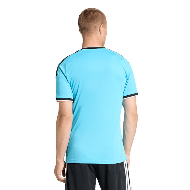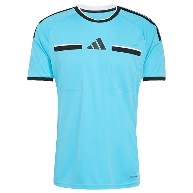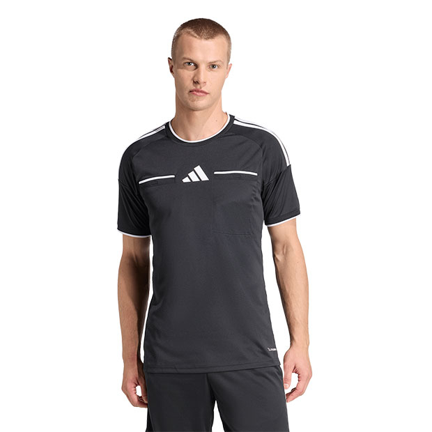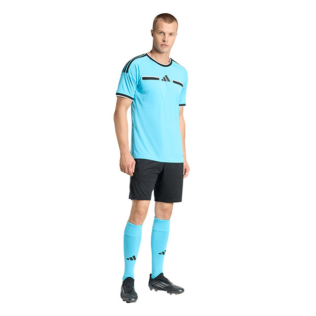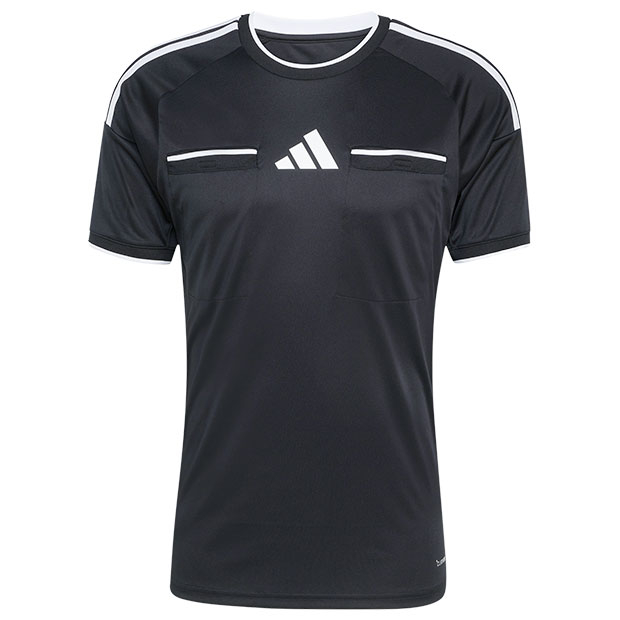 定番のレフェリー用ウェアー。脇下の特殊なパターン構造とストレッチ素材のインサートが腕の自由度を高め、試合中にジャージがほどけることがないよう配慮。CLIMACOOLテクノロジーにより、汗を吸い上げて分散させ、涼しくドライな着心地を実現。スリムフィット仕様。