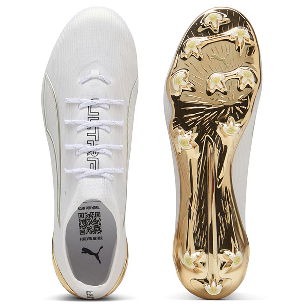 異次元のスピードでゲームを支配するスピードブーツ、アルティメットモデルスパイク。最速を追求し開発された独自素材を使用したエンジニアードメッシュアッパーにサポート素材「PWRTAPE」を配置することで、更なる柔軟性と保形性、サポート性を実現。低反発素材「Ortholite」をヒールクッションに使用し、フィッティングを向上。爆発的な推進力と相手を置き去りにする加速力を生み出す、新次元のスピードシステムアウトソールを搭載。