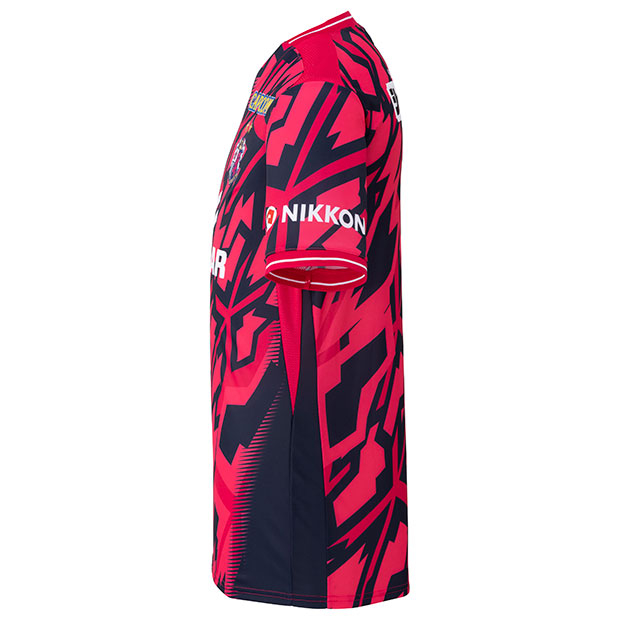 2026年明治安田百年構想リーグ着用ユニフォームのレプリカモデル。デザインコンセプトは「Next Leap」。セレッソピンクと深いネイビーのコントラストで覚悟と決意を、走る亀裂状のグラフィックで限界を破り続けてきたクラブの軌跡を表現。中央に差し込む光のエフェクトで、未来へ進むスピードとそこに宿る希望をイメージ。大人/メンズ用。