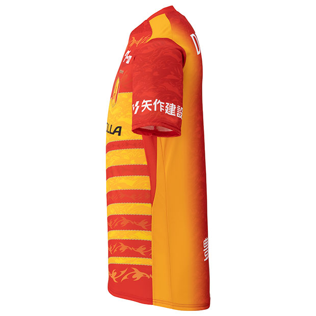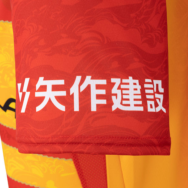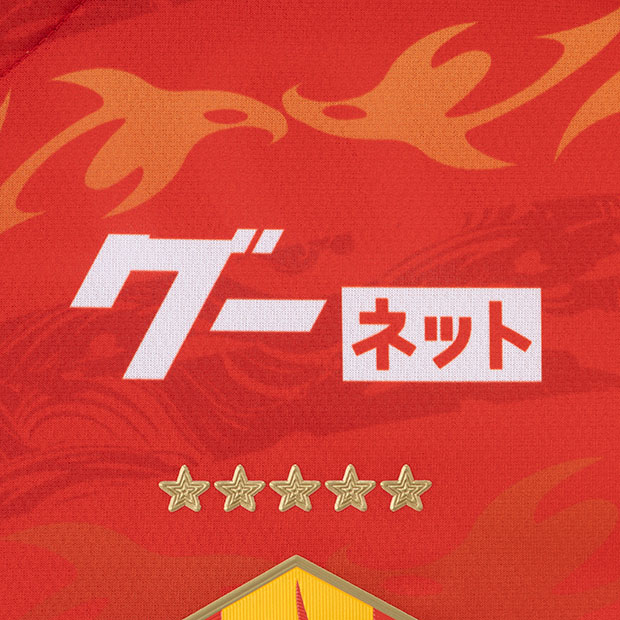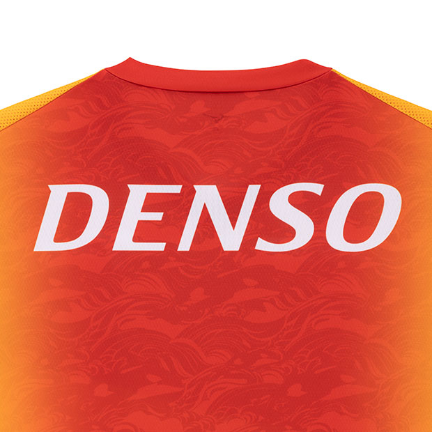 2026年明治安田百年構想リーグ着用ユニフォームのオーセンティックモデル。名古屋グランパスの象徴「シャチ」をモチーフに、大勢の群れでうねりを生みながら相手に立ち向かう、その奔流のような様を大胆なグラフィックに落とし込んだデザインを採用。大人/メンズ用。
