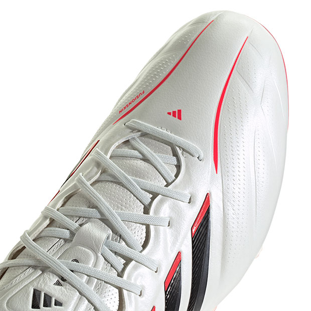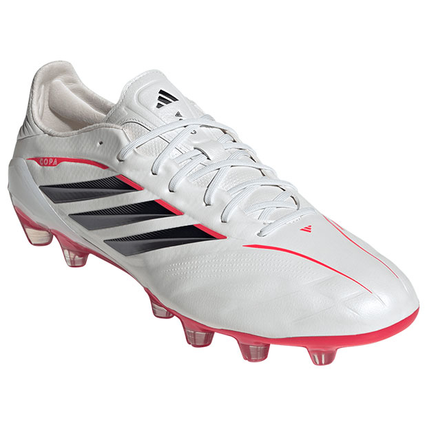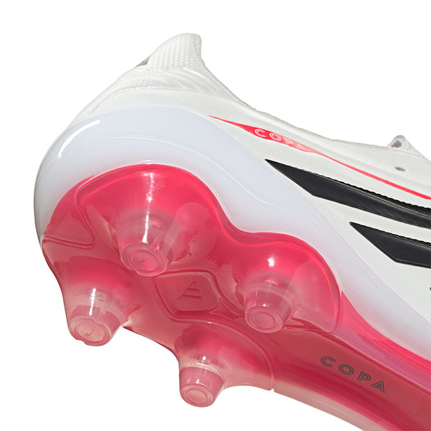 最高のパフォーマンスを求めるアスリートのためサッカースパイク、エリートモデル。独特な形状のヒールカウンターを搭載し、スムーズかつ素早い足入れを実現。軽量ストライクフレームプレートが、機敏なターンと快適な履き心地を両立。耐久性に優れた合成素材とレザーのアッパーを採用し、高い通気性と耐久性を実現。土・ロングパイル人工芝グラウンド対応。