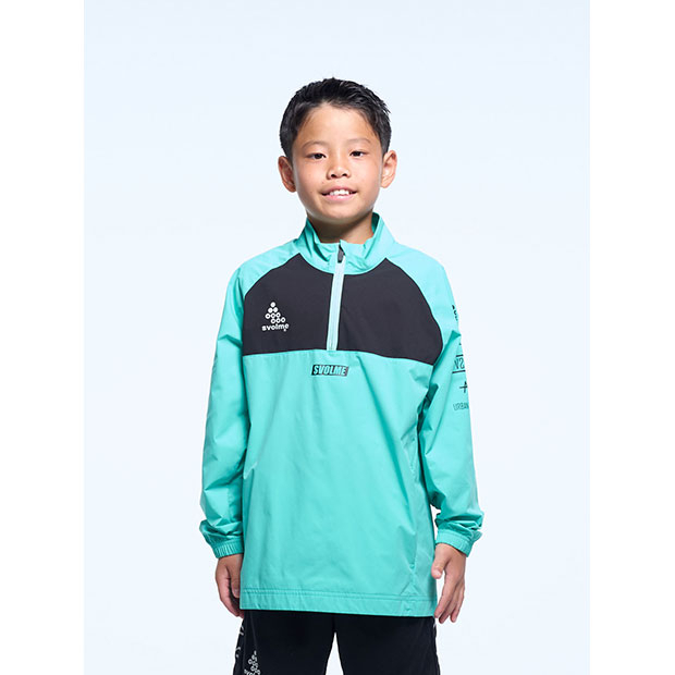 ナチュラルストレッチ素材で風を遮り、ストレッチによりストレスなく着用可能なピステアイテム。ハーフジップ仕様。