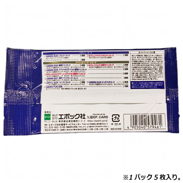 定番のサポーターズアイテム。EPOCHサッカー日本代表カードのスペシャルエディション。SAMURAI BLUE・なでしこジャパンの59選手・監督の直筆サインカードなど、レアカードを含むラインナップの中から、ランダムで1パック5枚入り。