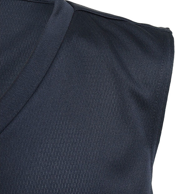 様々なスポーツに対応した、ワンポイントロゴデザインのノースリーブインナーシャツ。Vネック仕様。レギュラーフィット仕様。