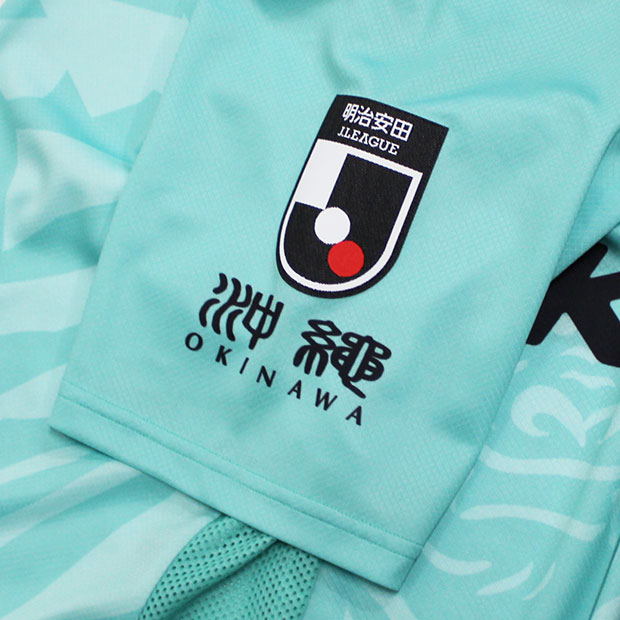 2026年明治安田百年構想リーグ着用ユニフォームのオーセンティックモデル。沖縄の海を彷彿とさせるエメラルドブルーを基調に、しなやかさと躍動感を演出。
