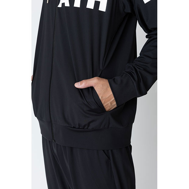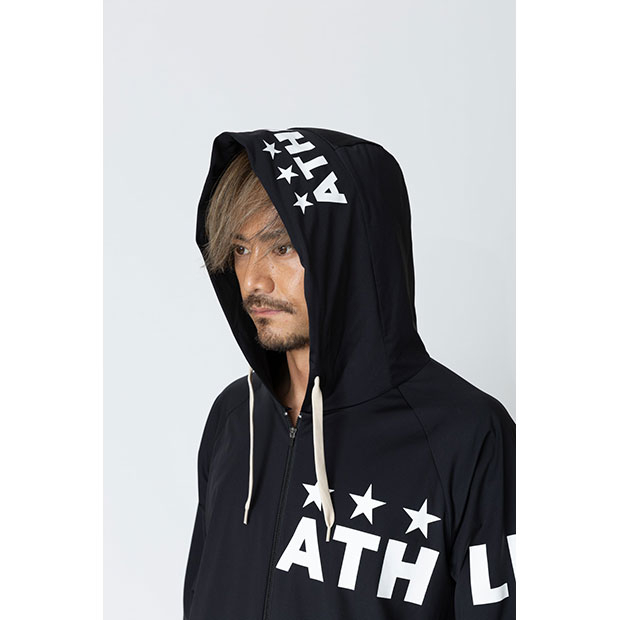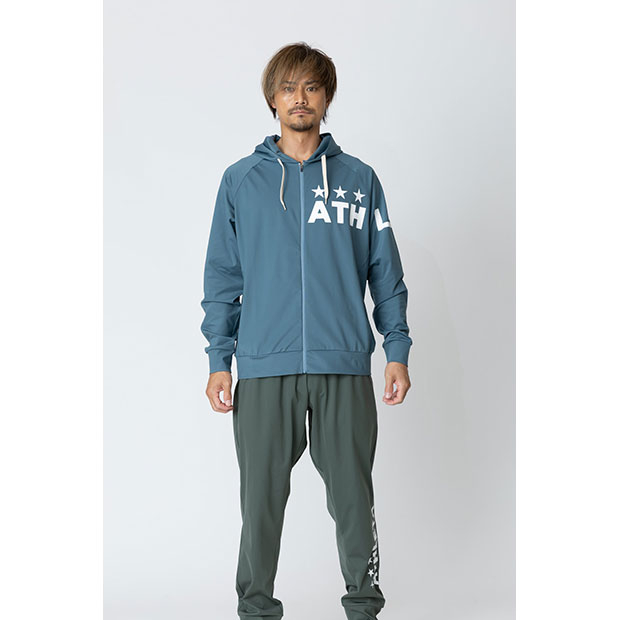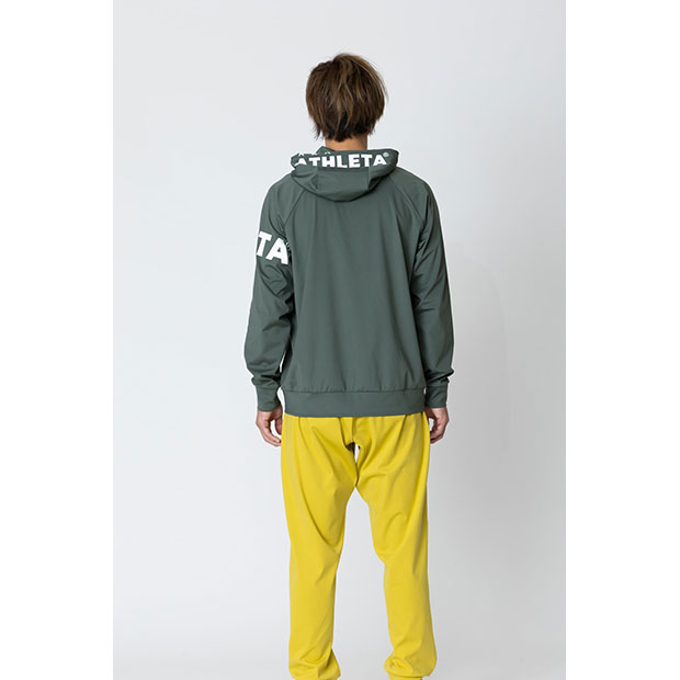 ナイロン繊維の特性を活かした接触冷感素材「COOL TOUCH」を使用したナイロンフーディ。スタンダードなアスレタロゴデザイン。