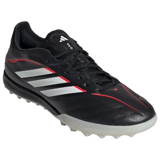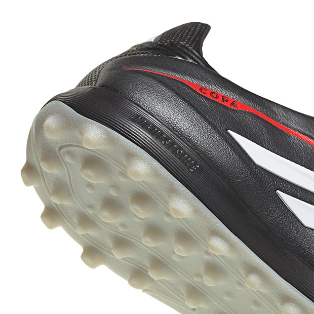 伝統と革新を融合し、快適性・ボールタッチ・フィット感にこだわったターフシューズ。Ortholiteソックスライナーの人間工学に基づいた構造とフュージョンスキンのソフトな履き心地が、足底の負担を軽減し、快適性と耐久性を両立。?セミブーティ仕様のプライムニットシュータンが足を優しく包み、シューレース付きのフローティングシュータンでフィット感を調節可能。軽量EVAミッドソールが足に心地良いクッション性と柔軟性をもたらし、フォームパッケージ付きのパッド入りヒールがさらに快適さを向上。?一体型スタッドのラバーアウトソールが安定したグリップ力を発揮。丸みを帯びた3Dハプティックプリントが、ボールとのグリップ力を向上。ターフコート対応。