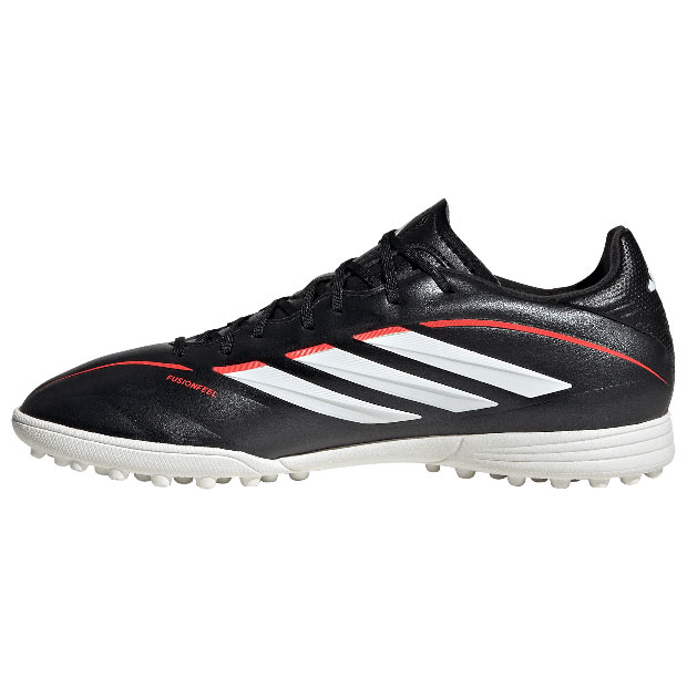 伝統と革新を融合し、快適性・ボールタッチ・フィット感にこだわったターフシューズ、ジュニアエントリーモデル。柔らかいアッパーと戦略的に配置されたパッドを組み合わせたFusionfeelテクノロジーが、繊細なボールの感覚を損なうことなく快適さを発揮。パッド付きのフローティングシュータンが、シューレースの圧迫感を軽減。シュータンのパーフォレーション加工により透湿性が向上。フォームパッケージを増やしたソフトなパッド入りヒールで、長時間のプレーでも快適さが持続。ターフコート対応。