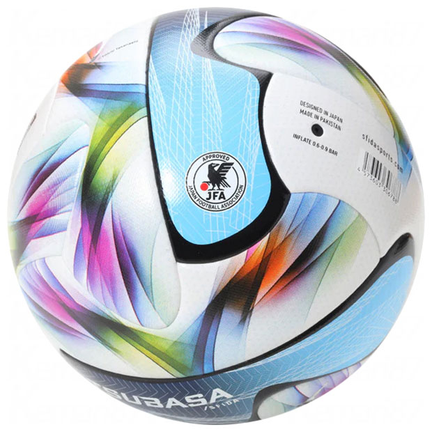 「明治安田Jリーグ百年構想リーグ」公式試合球のレプリカモデル。キャプテン翼とのコラボレーションライン「TSUBASA by SFIDA」。キャプテン翼の象徴である大空翼の必殺シュートをイメージした、美しい軌道を描いて進む「翼」をモチーフとしたデザイン。高橋陽一先生描き下ろしの大空翼をデザインを採用し、TSUBASA by SFIDAならではの世界観をより強く表現。