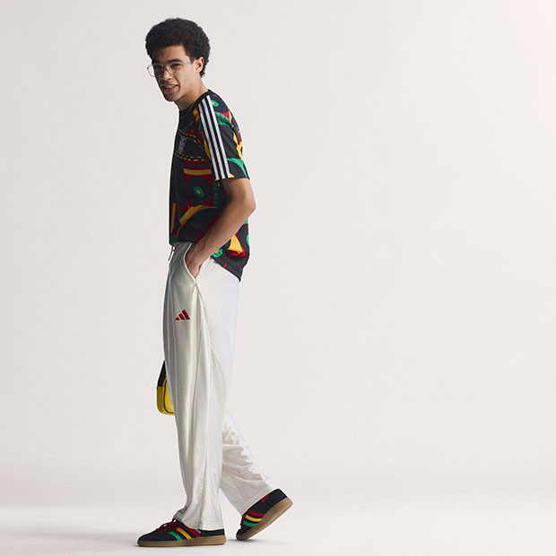 アウェイユニフォームの鮮やかなアクセントにインスパイアされた、サッカーカルチャーを日常として楽しむ人のためにデザインされた一着。アディダスオリジナルスのトレフォイルロゴが、クラシックでスポーティーなスタイルを演出。スリムフィット仕様。
