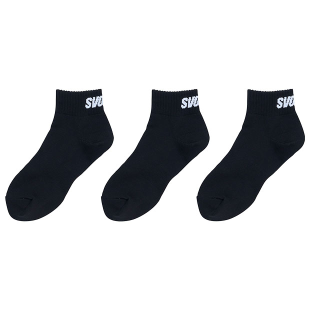 ギア用の素材を使用した3足組ショートソックス。足底にサポート入り。