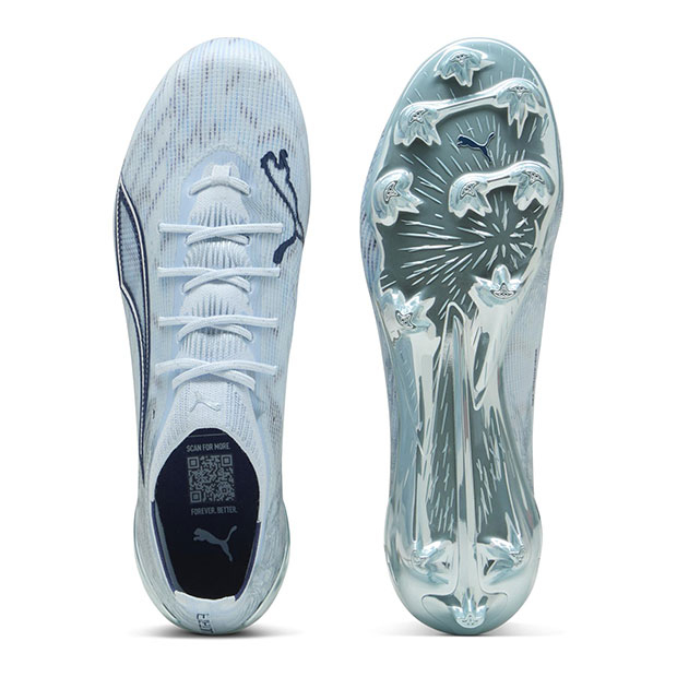 異次元のスピードでゲームを支配するスピードブーツ、アルティメットモデルスパイク。最速を追求し開発された独自素材を使用したエンジニアードメッシュアッパーにサポート素材「PWRTAPE」を配置することで、更なる柔軟性と保形性、サポート性を実現。低反発素材「Ortholite」をヒールクッションに使用し、フィッティングを向上。爆発的な推進力と相手を置き去りにする加速力を生み出す、新次元のスピードシステムアウトソールを搭載。