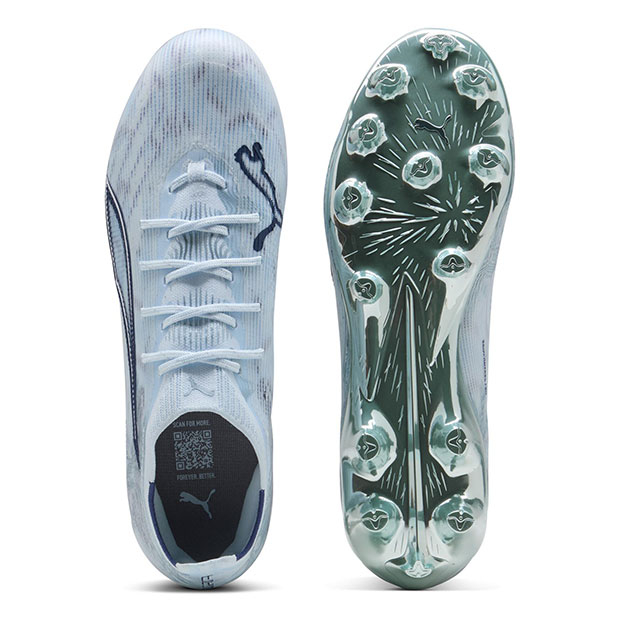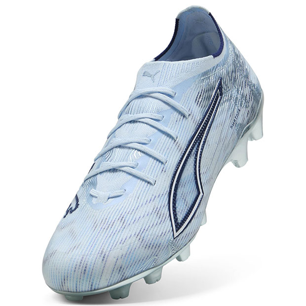 異次元のスピードでゲームを支配するスピードブーツ、アルティメットモデルスパイク。最速を追求し開発された独自素材を使用したエンジニアードメッシュアッパーにサポート素材「PWRTAPE」を配置することで、更なる柔軟性と保形性、サポート性を実現。ウルトラの特徴である加速力を発揮する軽量アウトソールを搭載。低反発素材「Ortholite」をヒールクッションに使用し、フィッティングを向上。ジャパンラスト搭載モデル。