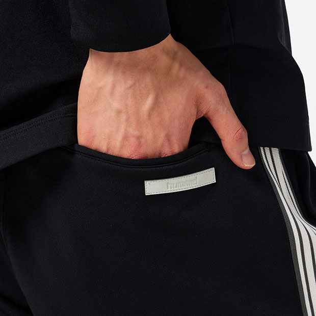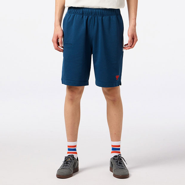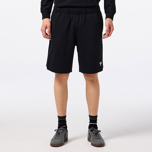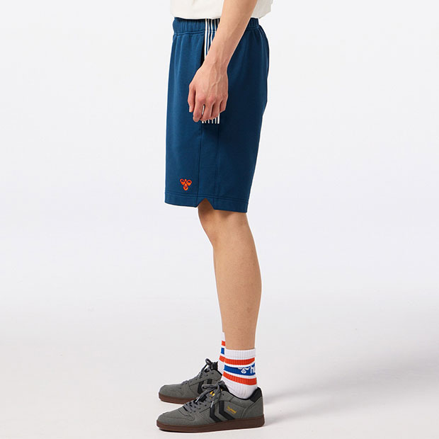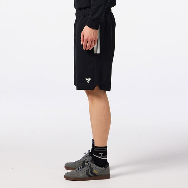 スポーツに関わるすべての人に向けたhummel PLAYコレクションのスウェットハーフパンツ。ストレッチ性があり、ソフトな風合いのライト裏毛素材を使用。裾にバンブルビーロゴをシンプルに刺繍。