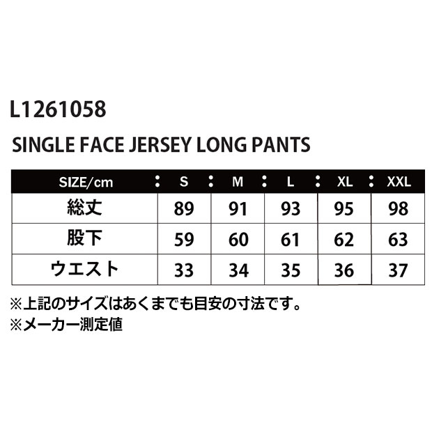 シングルフェイスジャージロングパンツ