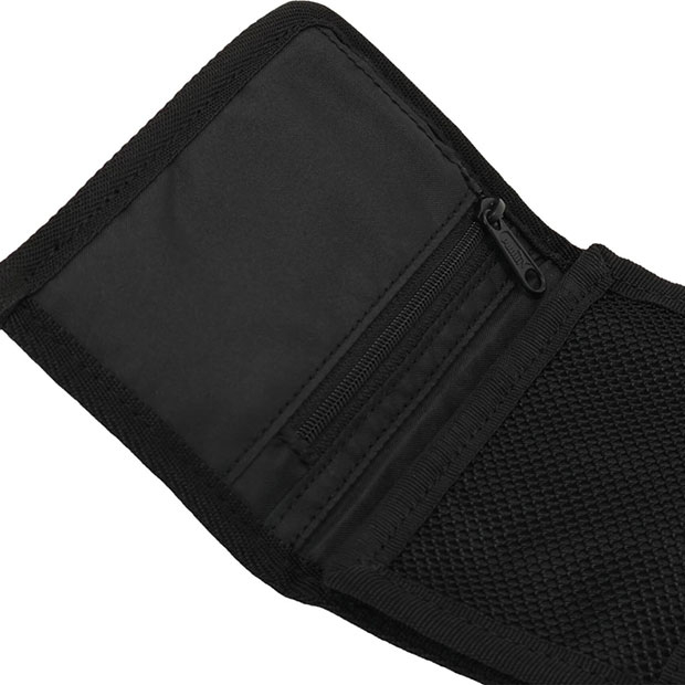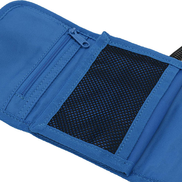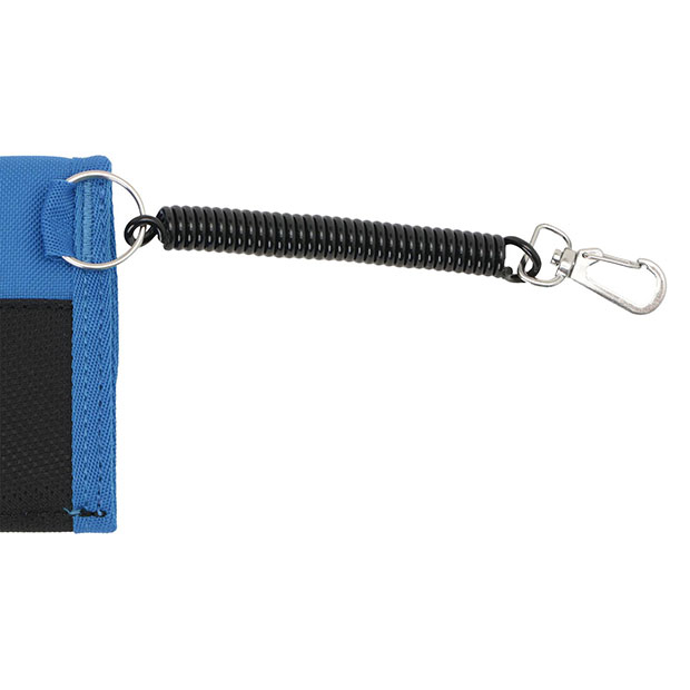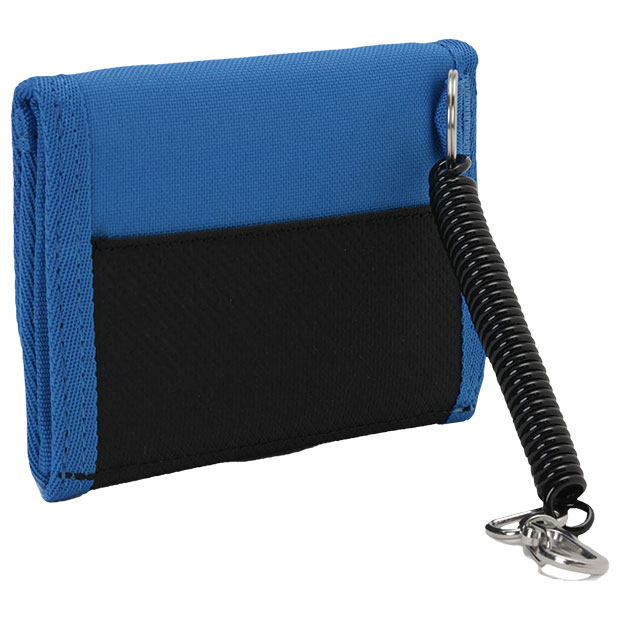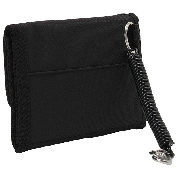 アクティブに動き回るシーンでも快適に使用できる三つ折りウォレット。落下防止用の伸縮性のあるスプリングストラップ付き。