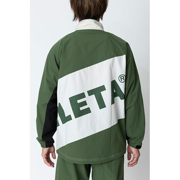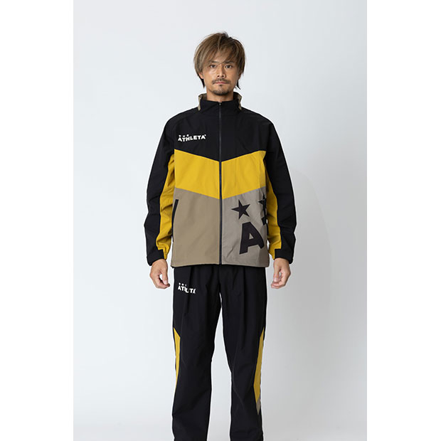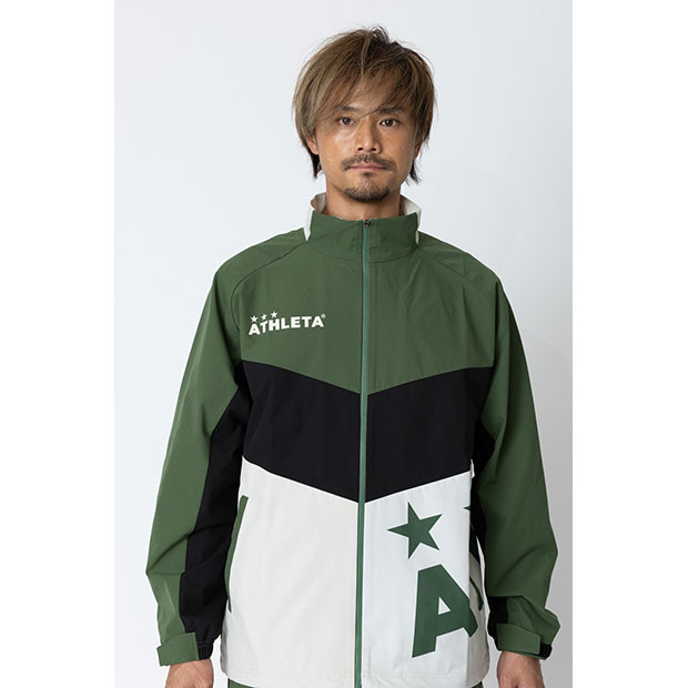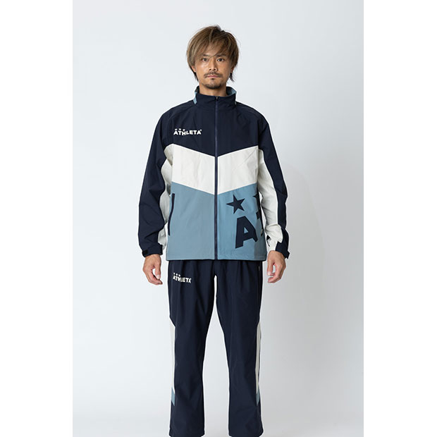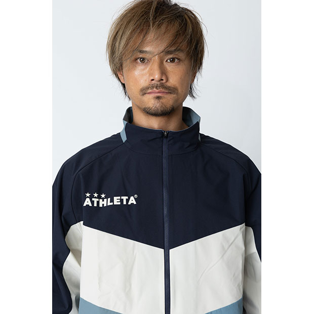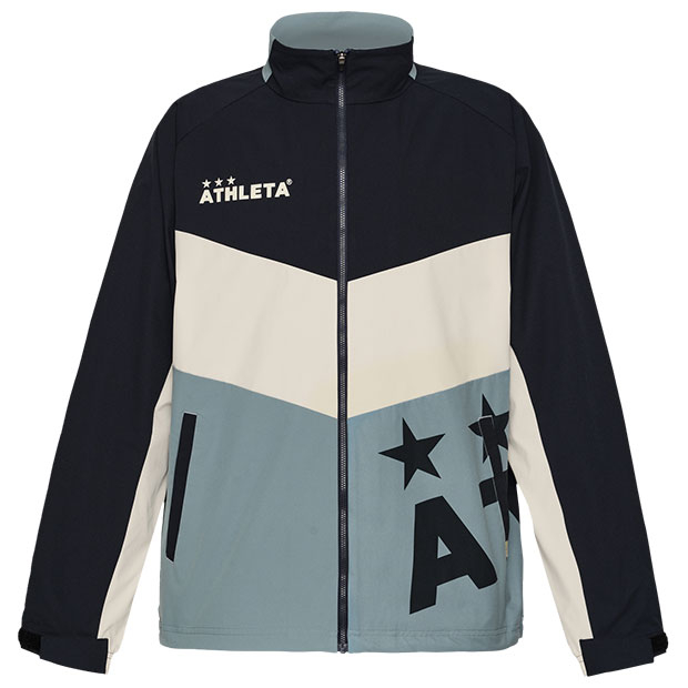 ATHLETAビッグロゴが目を引く、撥水性と防風性に優れたジャケット。日常的なトレーニングシーンから移動時まで、幅広いシーンで活躍。ワイドシルエット。