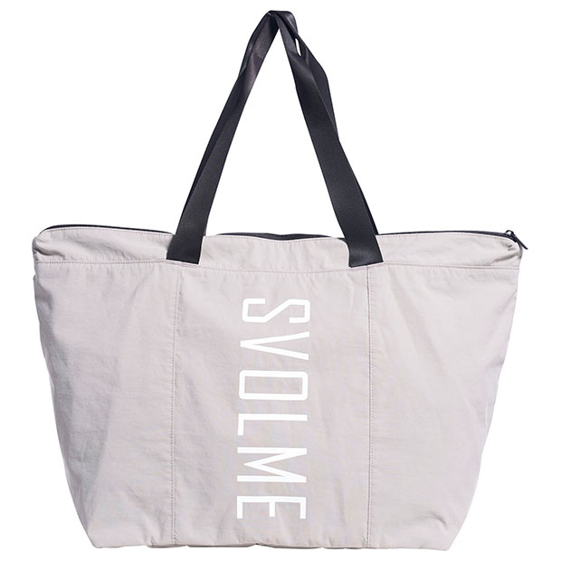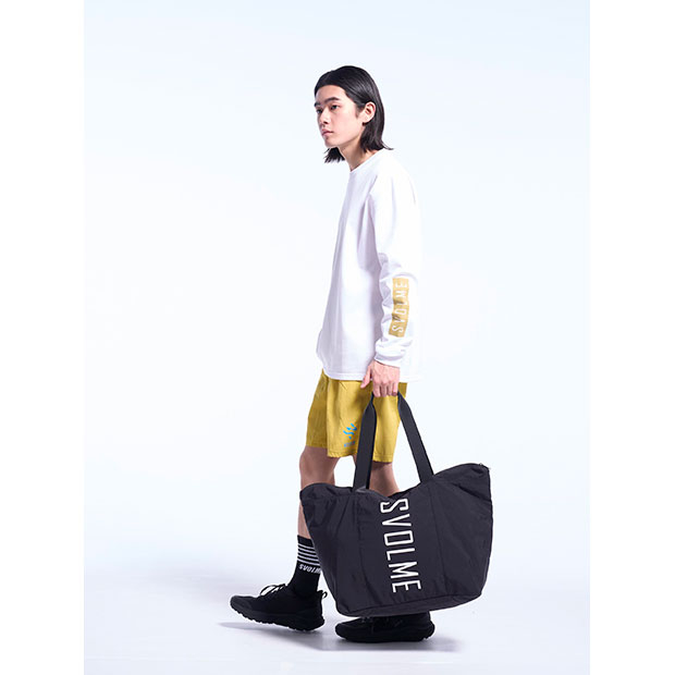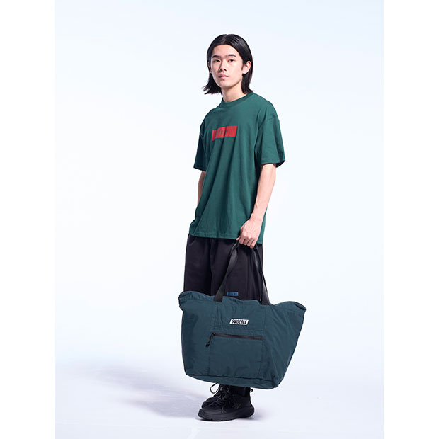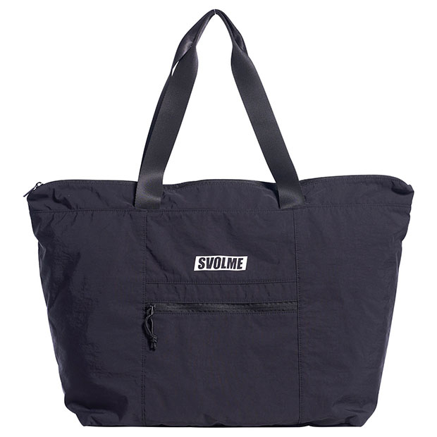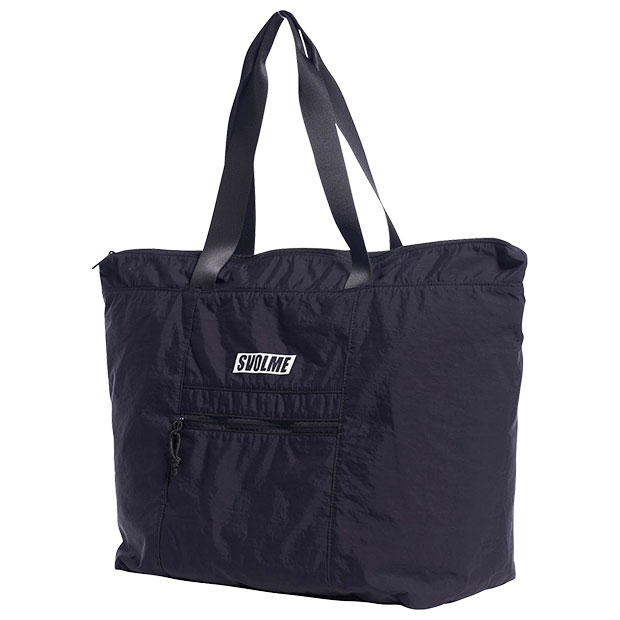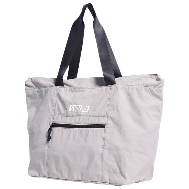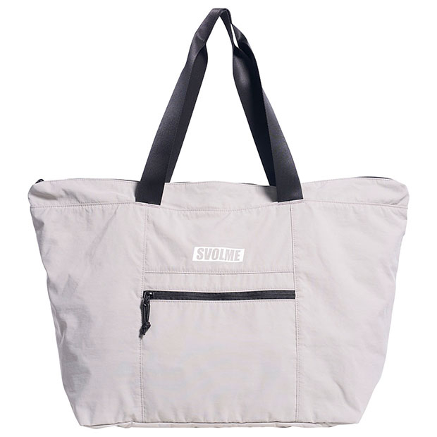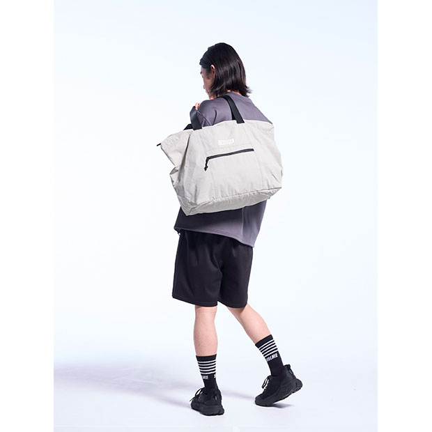 コンパクトに折り畳んで持ち運び可能なパッカブル仕様のトートバッグ。移動時に最適なサイズ感。外に1つ、中に3つのファスナーポケット付き。