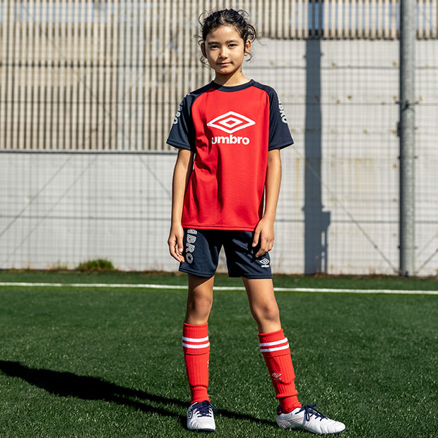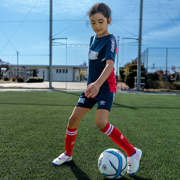はじめてのスクール通いも安心な「STARTER」シリーズ。1枚で2種類のデザインが楽しめるリバーシブル仕様のサッカーシャツ。軽量かつサラリとした肌触りの生地を使用。