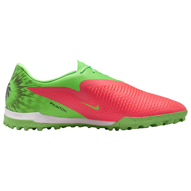 攻撃の正確さを追求するプレーヤーのためにデザインされた「ファントム 6」、エントリーモデルターフシューズ。アーリング・ハーランド選手シグネチャーモデル。凹凸のあるテクスチャードナイキスキンが、グリップ性能を向上。クシュロン3.0ミッドソールを搭載。ローカット仕様。