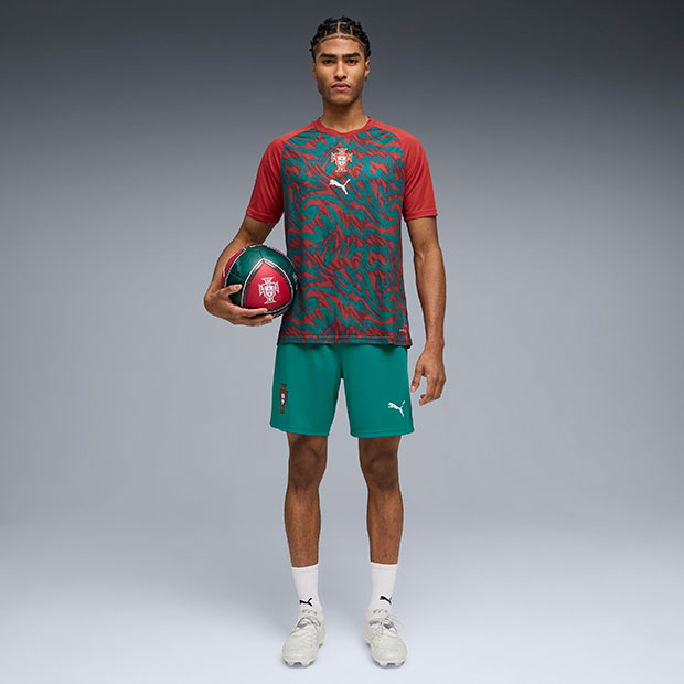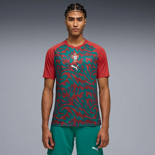 選手が試合前練習時に着用するプラクティスシャツ。軽量で独自の吸水速乾機能を備えたdryCELL生地を使用。スリムフィット仕様。