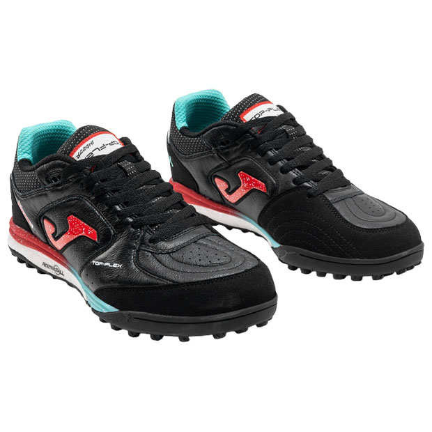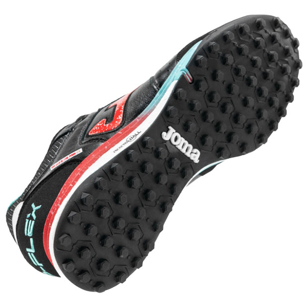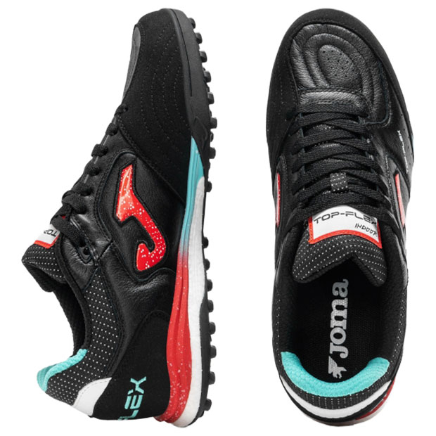 柔軟性とフィット感、安定性を兼ね揃え、フットサルにおいて高いパフォーマンスを発揮するように設計された、スペインフットサルリーグで人気のレザーアッパーモデル、厚底ターフトレーニング仕様。アッパーに非常に柔軟性の高いプレミアムレザーを使用。内側に高品質ナイロンを使用。つま先部分はシュート用に強化。TOP FLEX先端の内側は革を若干厚く設計し、耐久性を強化。人工芝グラウンド対応。