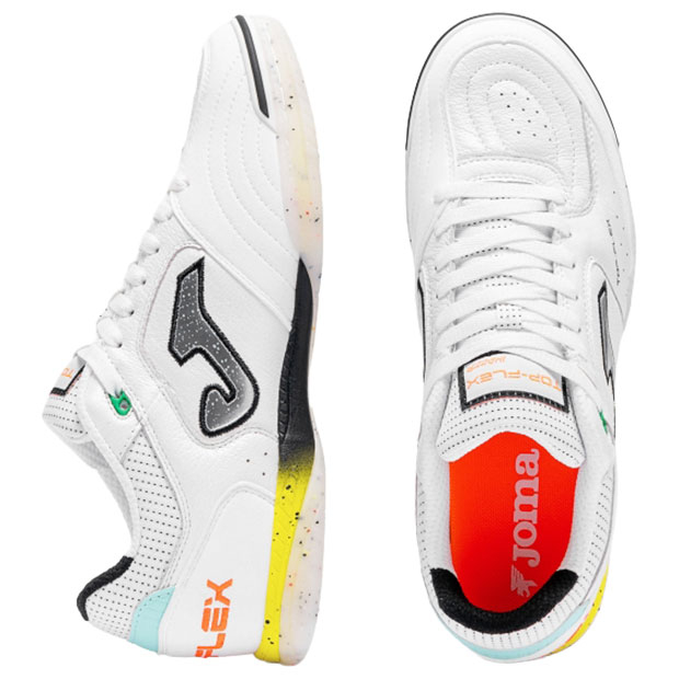 柔軟性とフィット感、安定性を兼ね揃え、フットサルにおいて高いパフォーマンスを発揮するように設計された、スペインフットサルリーグで人気のレザーアッパーモデル。アッパーに非常に柔軟性の高いプレミアムレザーを使用。内側に高品質ナイロンを使用。つま先部分はシュート用に強化。TOP FLEX先端の内側は革を若干厚く設計し、耐久性を強化。