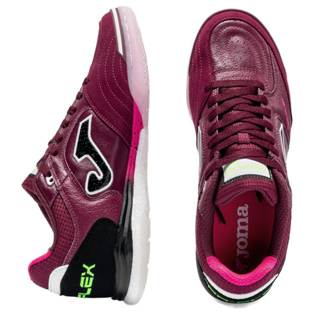 柔軟性とフィット感、安定性を兼ね揃え、フットサルにおいて高いパフォーマンスを発揮するように設計された、スペインフットサルリーグで人気のレザーアッパーモデル、厚底タイプ。アッパーに非常に柔軟性の高いプレミアムレザーを使用。内側に高品質ナイロンを使用。つま先部分はシュート用に強化。TOP FLEX先端の内側は革を若干厚く設計し、耐久性を強化。