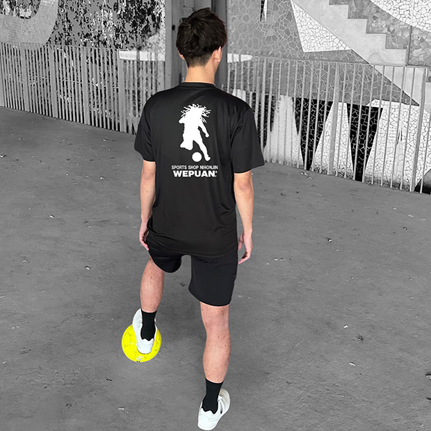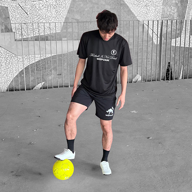 「フットボール×ファッション」をコンセプトに、1999年より原宿に店舗を構える「SPORTS SHOP NIHONJIN(スポーツショップ日本人)」とのコラボアイテム。フロントに「Football Is Not Dead」のメッセージロゴ入り。