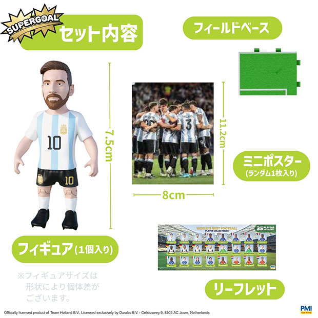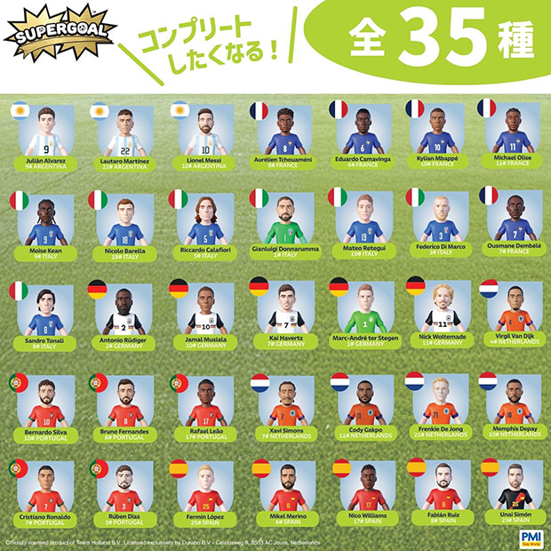 PMI Kids World社製のアクションフィギュア。2026年の国際大会開催に向けた、世界のサッカー強豪国の選手をフィーチャーしたコレクション。全35種類のうちランダムで1体入り。コレクションやプレゼントに最適。