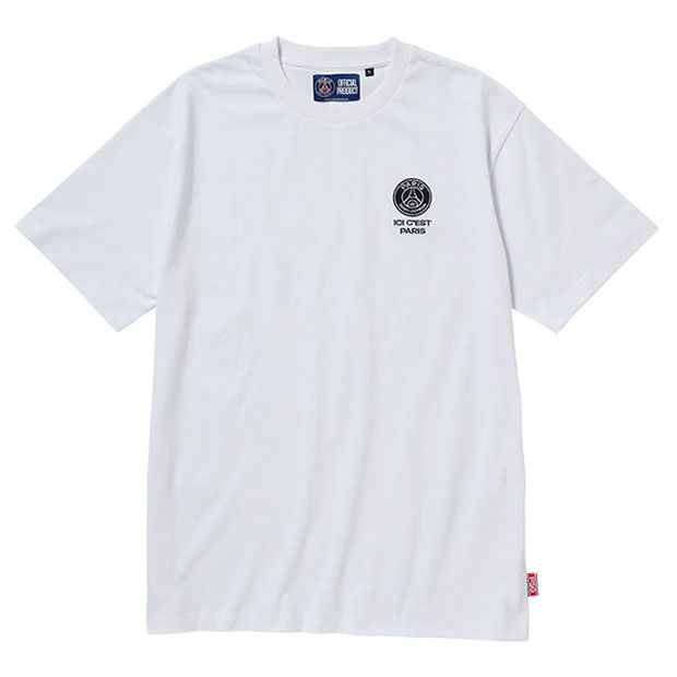 クラブチームライセンスモデルのショートスリーブシャツ。フランスの百合、日本の桜というそれぞれの国の象徴である花をPSGロゴに融合した、インパクトがあるのに上品に決まる一着。
