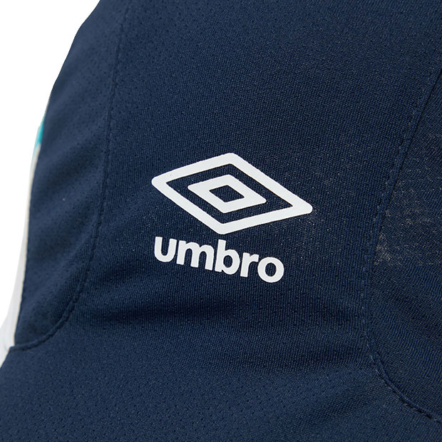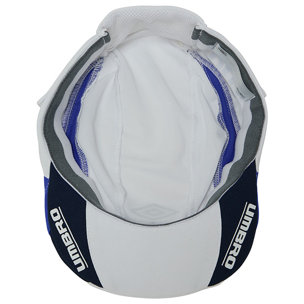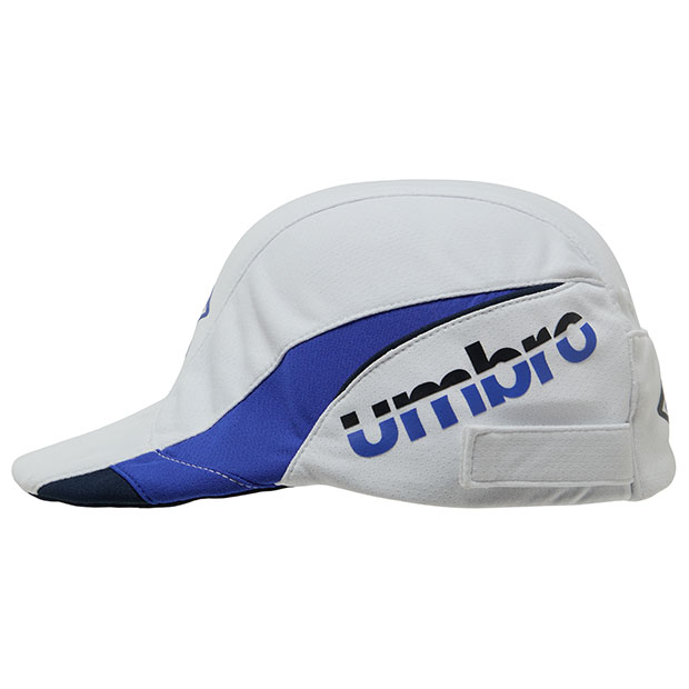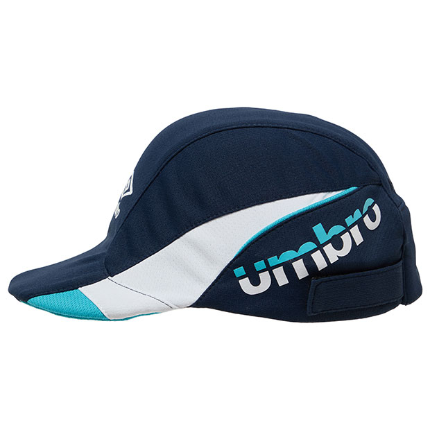 クーリングとUV機能を備えたサンスクリーンNIRを使用。後部に濡らすと冷たく感じられる素材を内蔵。ヘディングをしてもキャップが落ちにくく、ボールの軌道に影響が出にくく、衝撃の緩和にもなる設計。頭周り内側に滑りにくいテープを使用。前にしても後ろにしてもかぶれるツバは、ソフトな素材を採用。両サイドにアジャスター付き。