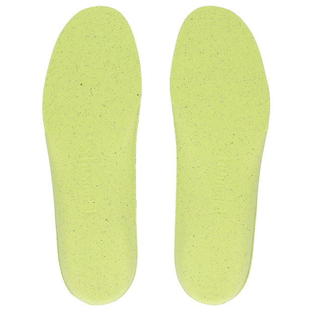 夏場の人工芝の熱さから足を守るために開発された断熱インソール。インソール内に含まれる断熱素材「エアロゲル」が約5度熱を軽減。一般的な鹿の子生地と比較して3.6倍のグリップ性能がある素材を使用。
