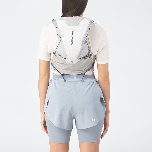 長距離トレイルに最適な12Lサイズのランニングバックパックベスト。身体に心地よくフィットするSensiFitデザインと、負荷をバランス良く分散するY字型構造を採用。素早く簡単に水分補給ができ、フロントポケットにサッと収まる新しいソフトフラスク付き。