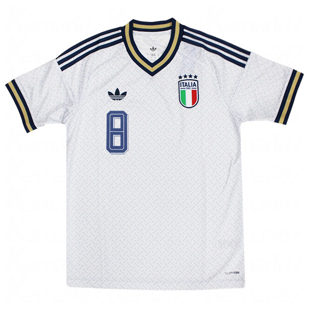 選手着用ユニフォームのレプリカモデル。祝賀会で着用されるスーツにインスパイアされたデザインで、世界のサッカーの礎におけるイタリアの重要性を表現。生地に組み込まれたCLIMACOOLテクノロジーが汗を吸い上げて分散させ、涼しくドライな着用感をキープ。スリムフィット仕様。大人/メンズ用。