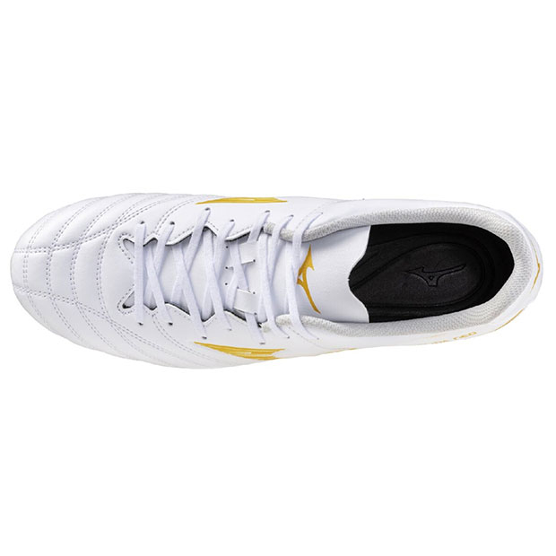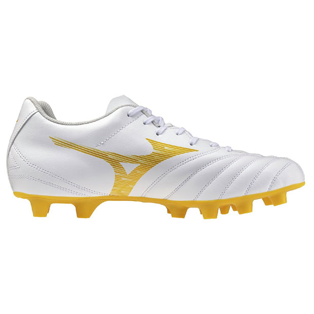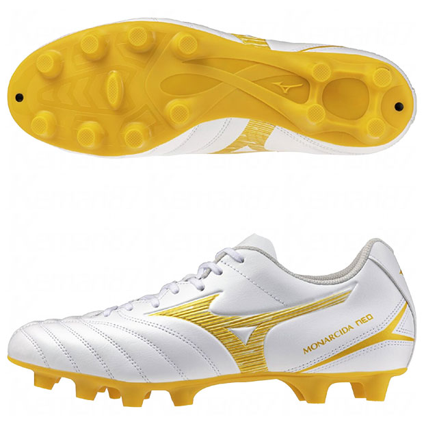 ミズノ、大人/メンズ用サッカースパイク「モナルシーダ ネオ 3 セレクト」。ブライトゴールドパック(BRIGHT GOLD PACK)。