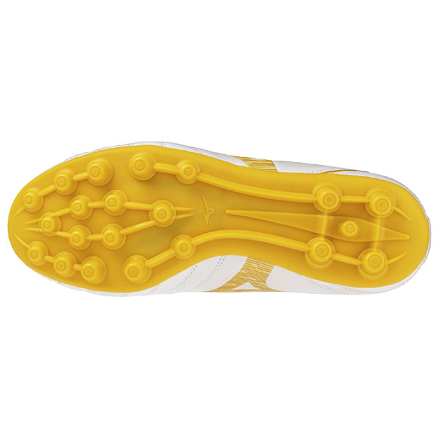 ミズノ、子供/ジュニア/キッズ用サッカースパイク「モナルシーダ ネオ 3 セレクト JR MG」。ブライトゴールドパック(BRIGHT GOLD PACK)。